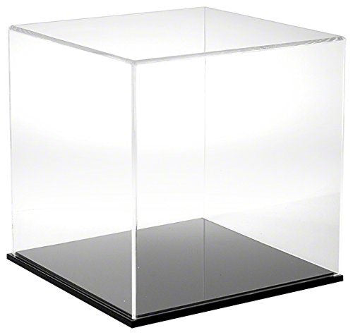 Caja exhibidora de acrílico cristal de 3 mm o 5 mm de espesor, con base negra de 6mm para embonar. Perfecto para exhibir artículos coleccionables, piezas de arte entre otros artículos de decoración.