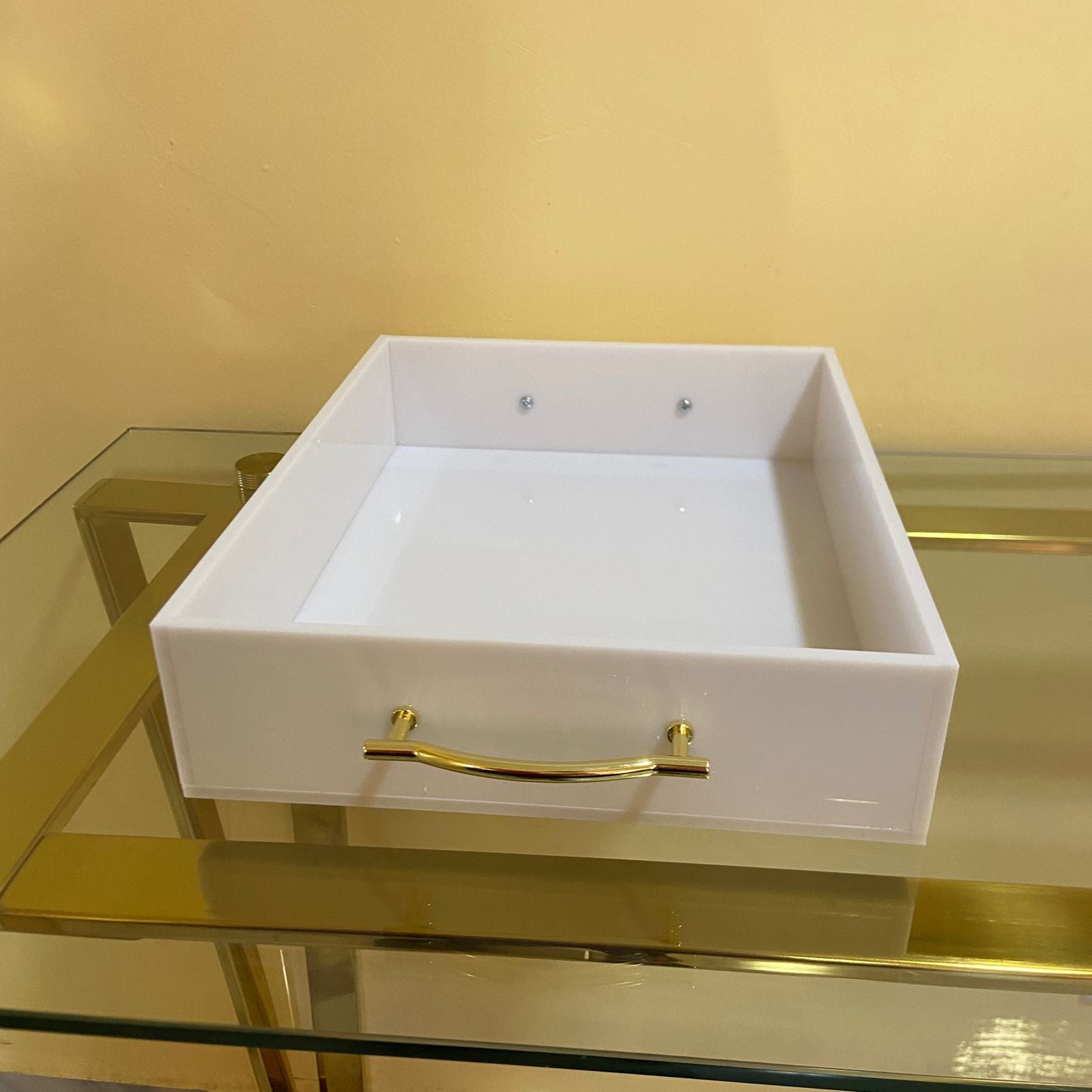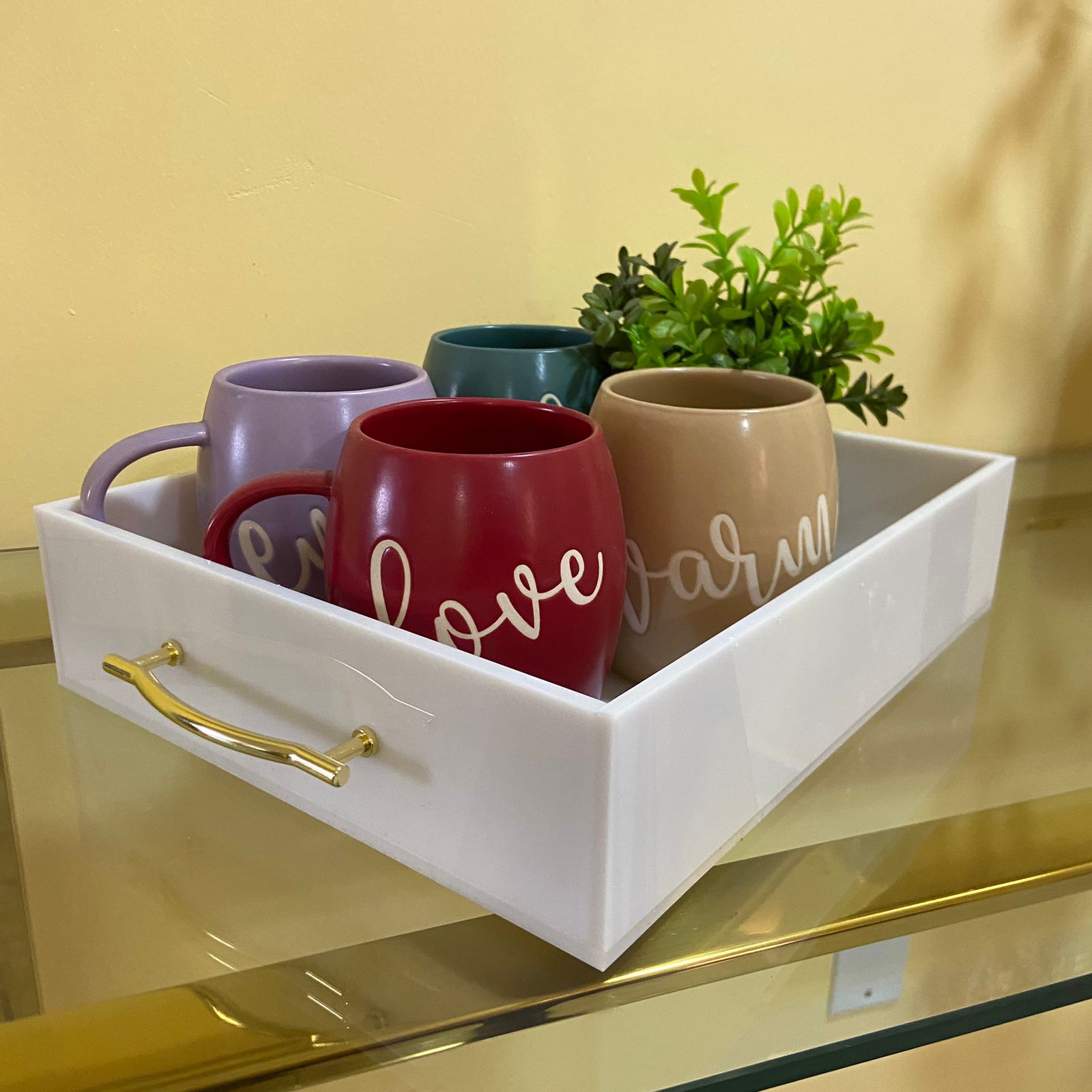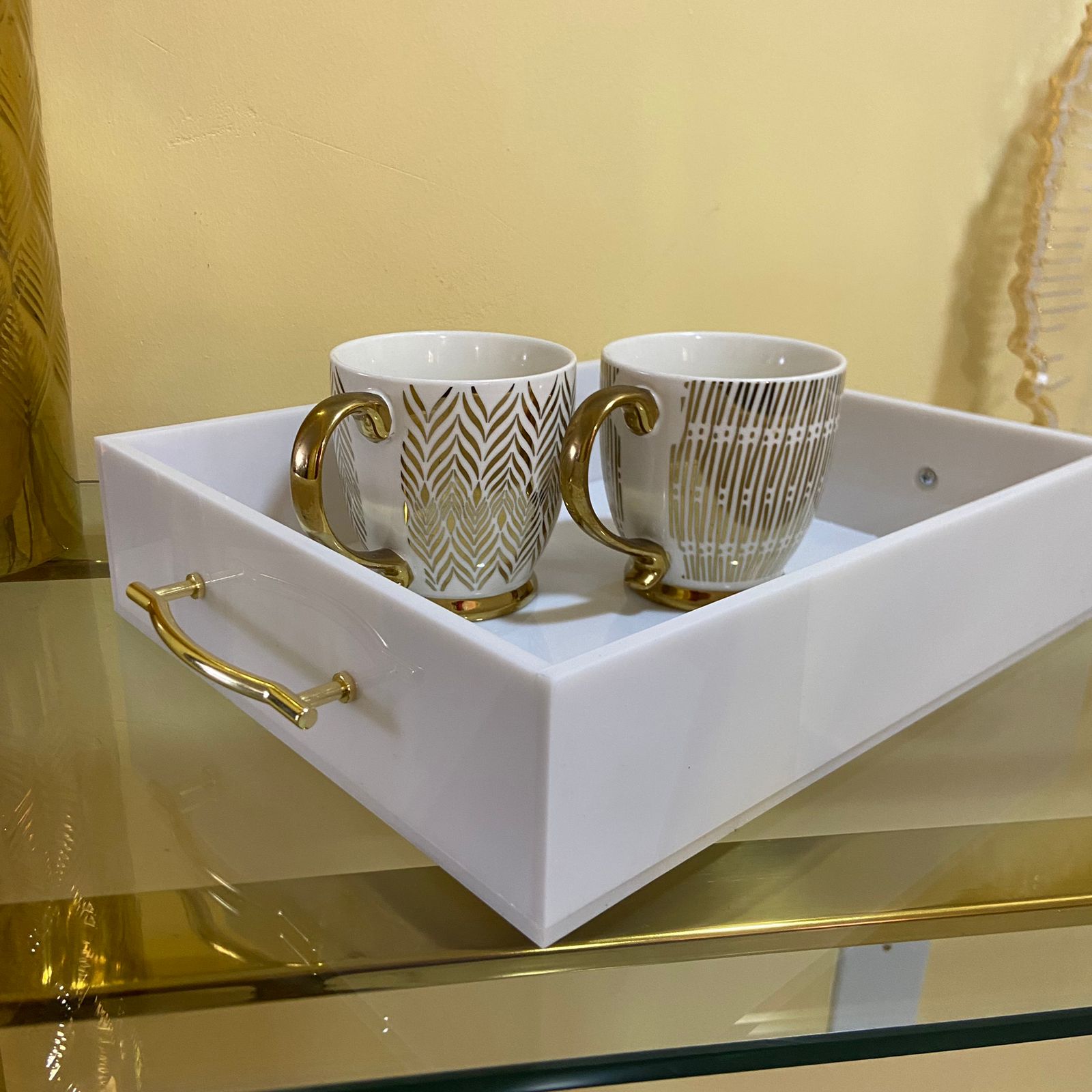 Charola decorativa de acrílico con agarraderas doradas o plateadas