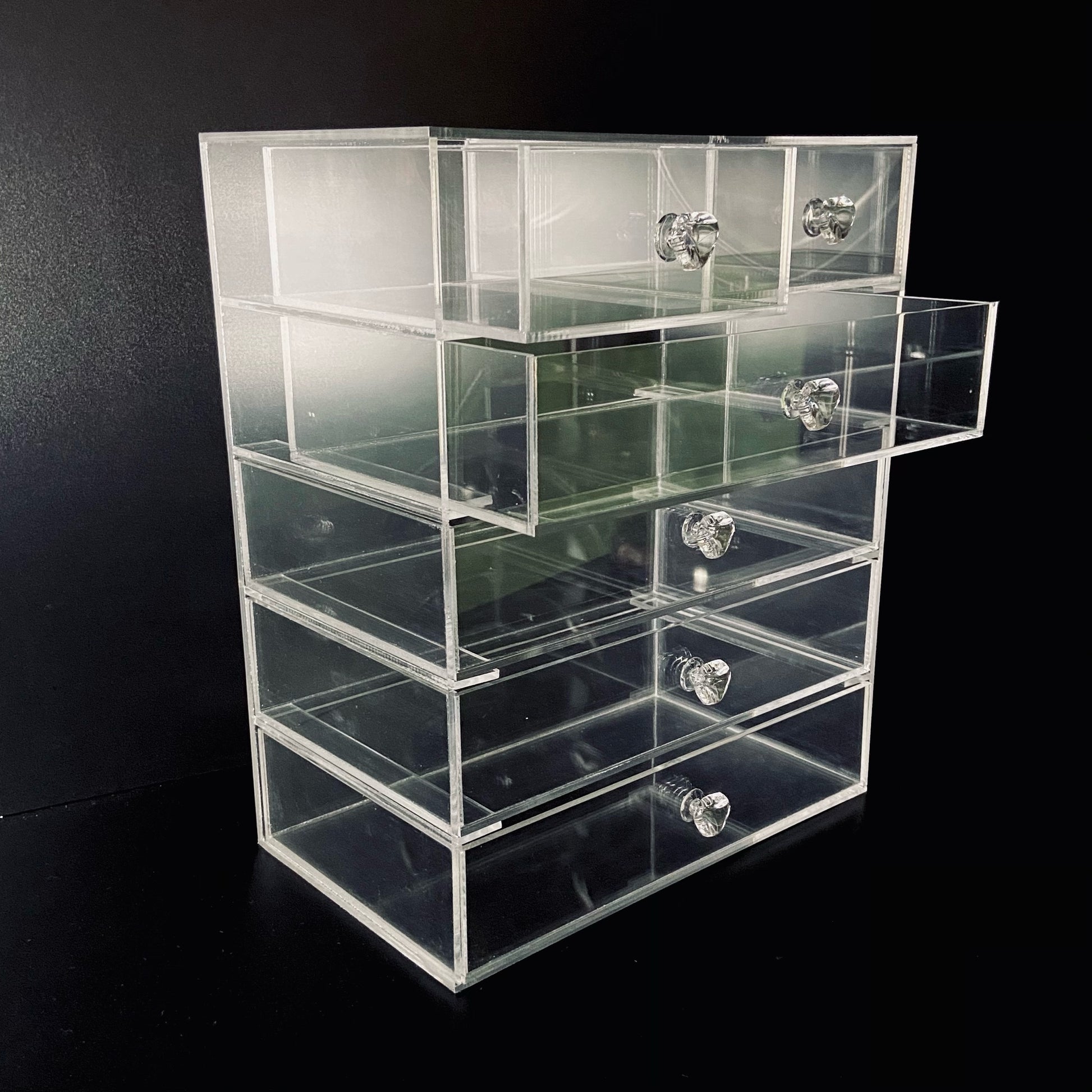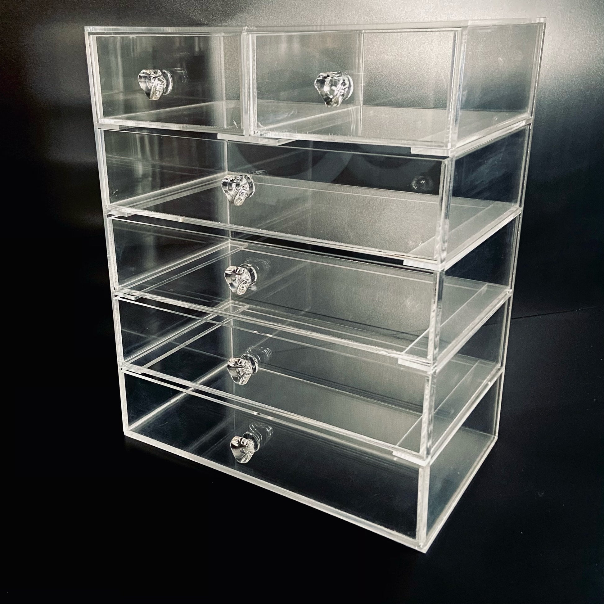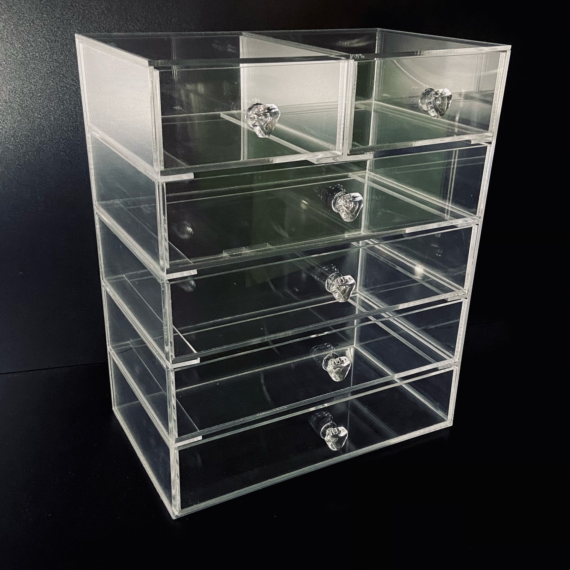 Cajonera organizadora perfecta para guardar maquillaje, cremas, artículos personales, del hogar o de oficina, para lucir increíble tu tocador, mesa de trabajo, escritorio o en cualquier lugar. Tiene 6 cajones, 2 chicos y 4 grandes y alargados, libres de divisiones.