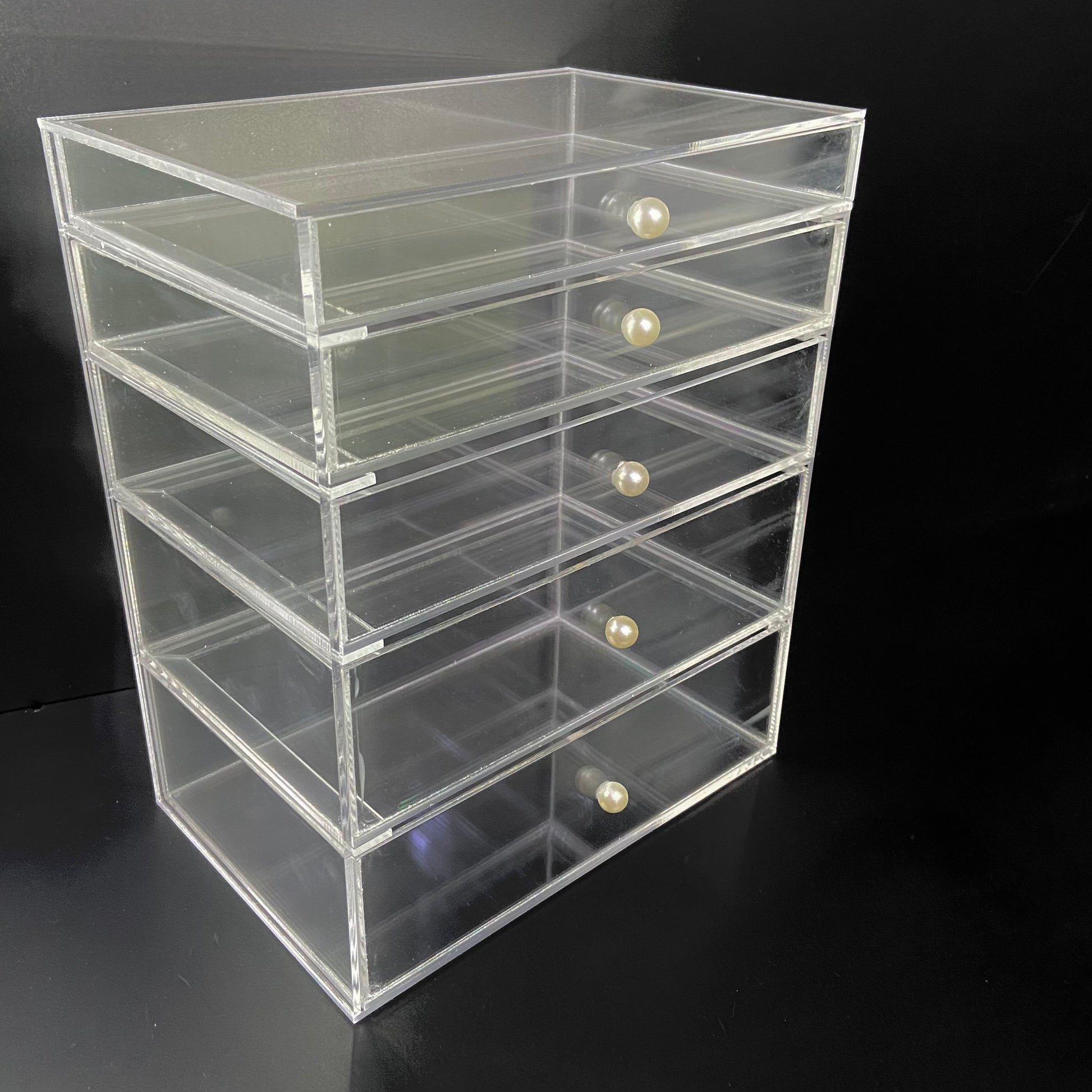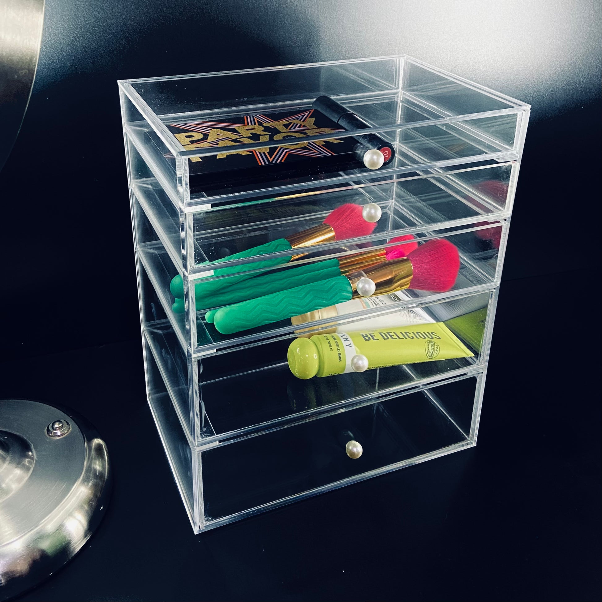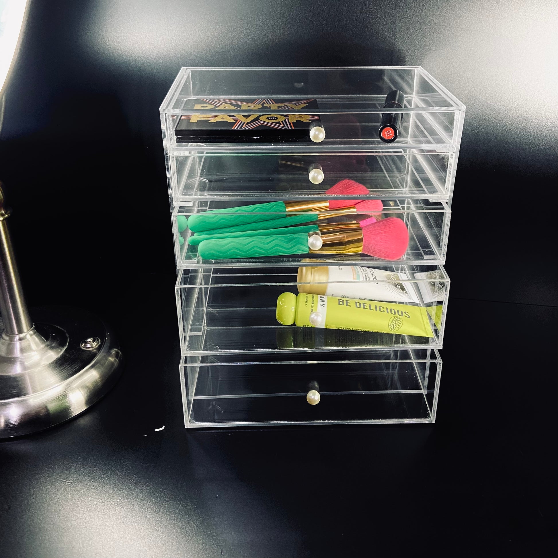 Organizador de acrílico con 5 cajones (2 pequeños y 3 grandes) multiusos.