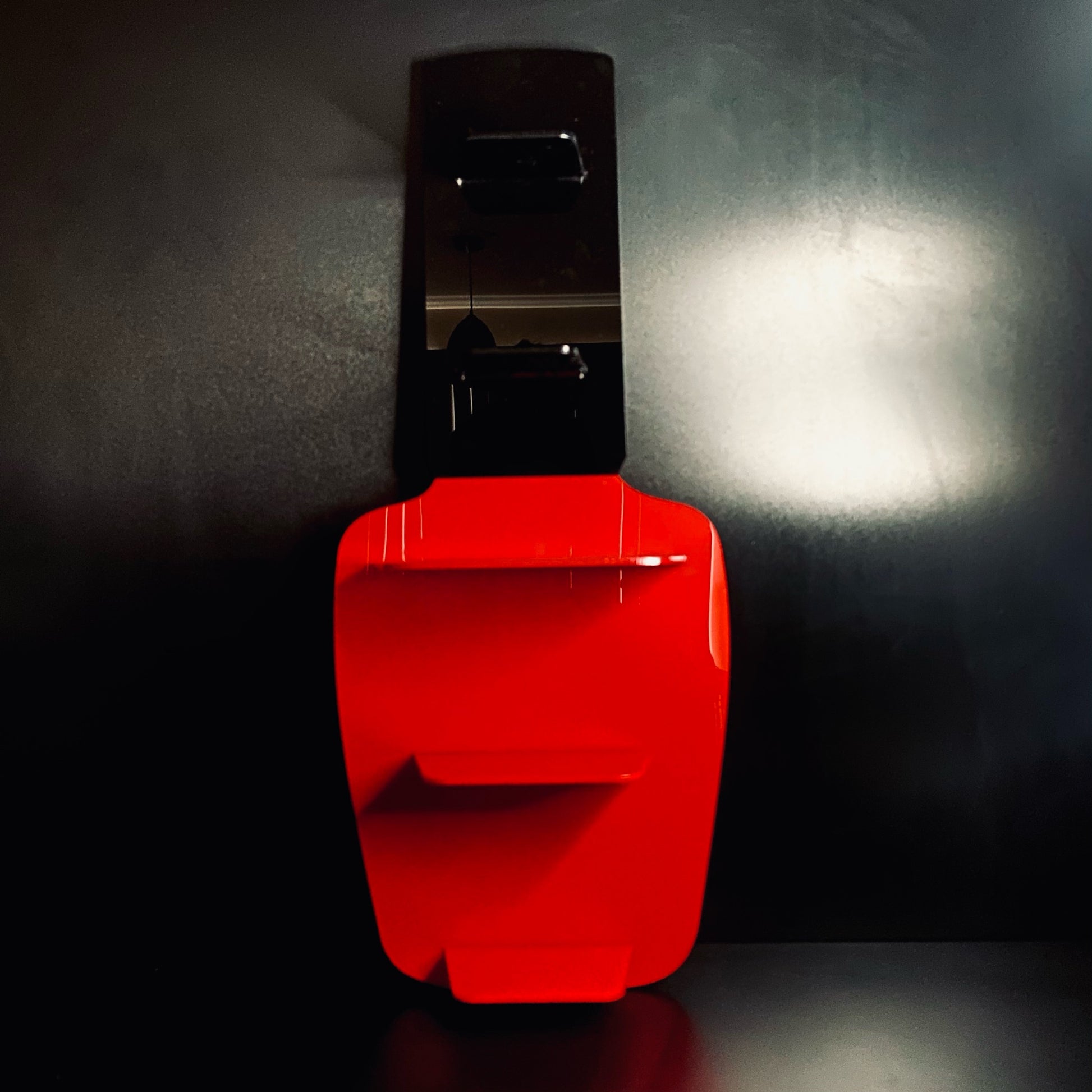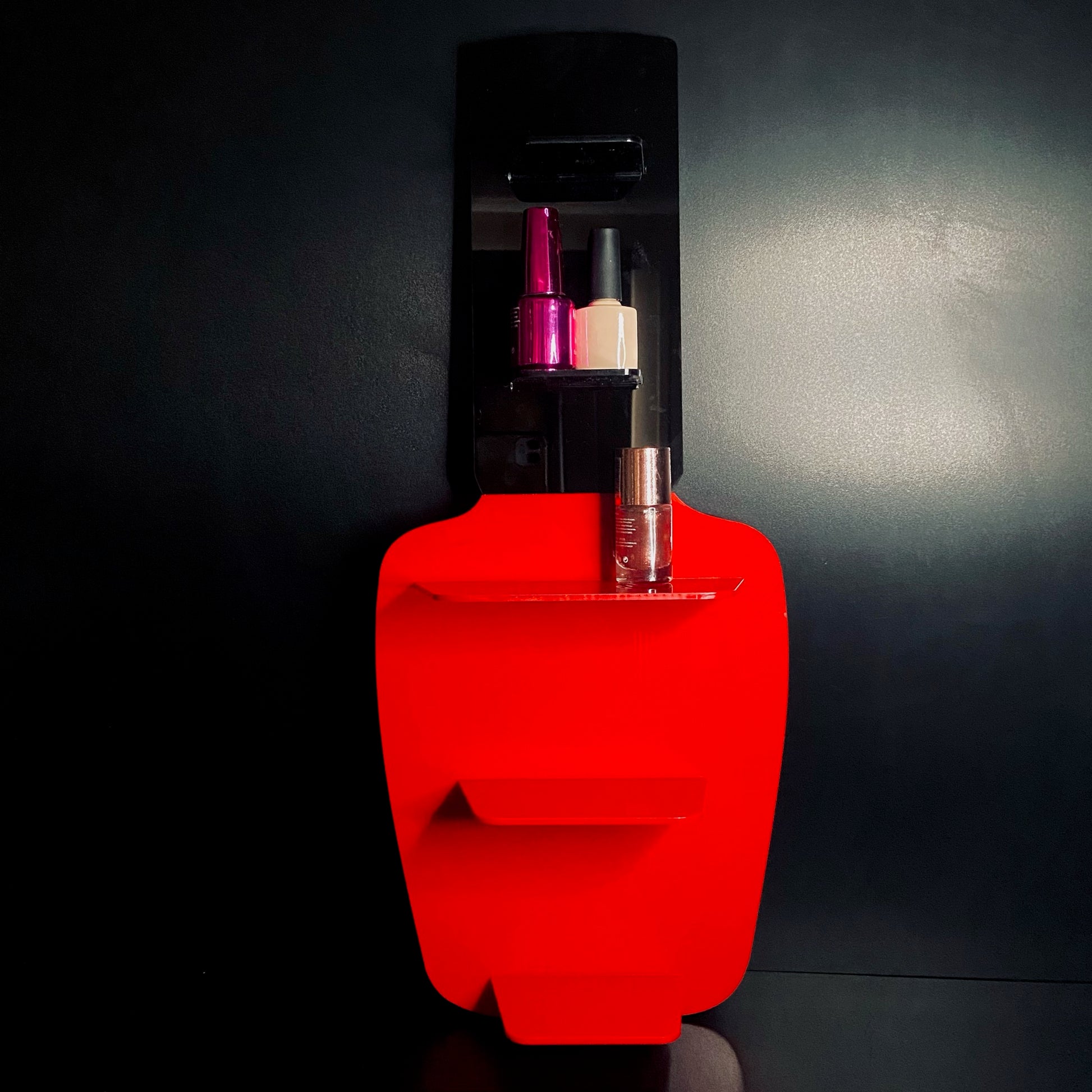 Porta esmaltes en forma de barniz gigante con repisas para colgar.