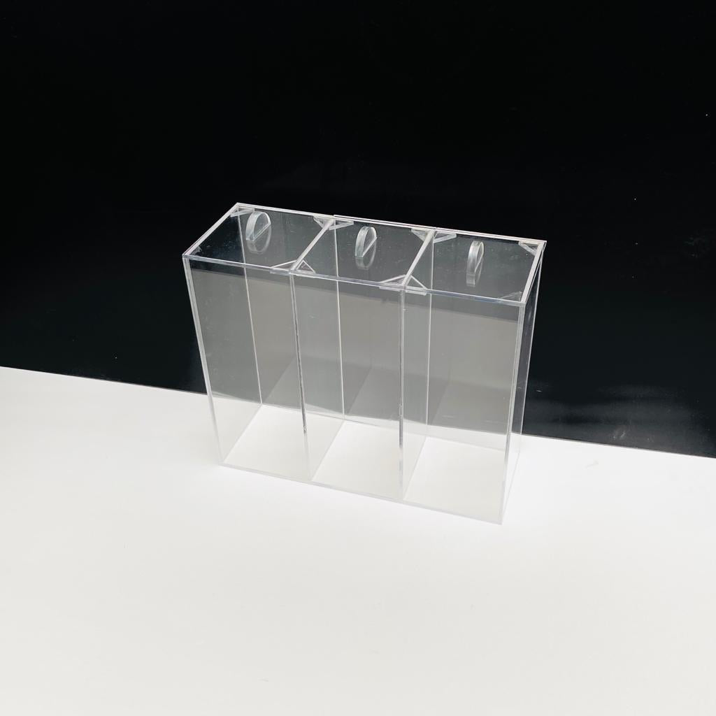 Porta brochas triple con tapas individuales, ideal para almacenar, organizar y lucir tus brochas para maquillaje.