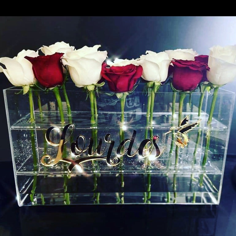 Porta rosas con 14 espacios, florero moderno y totalmente personalizado, excelente regalo para cualquier ocasión.